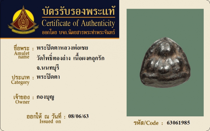 ค้นหาใบการันตีพระแท้