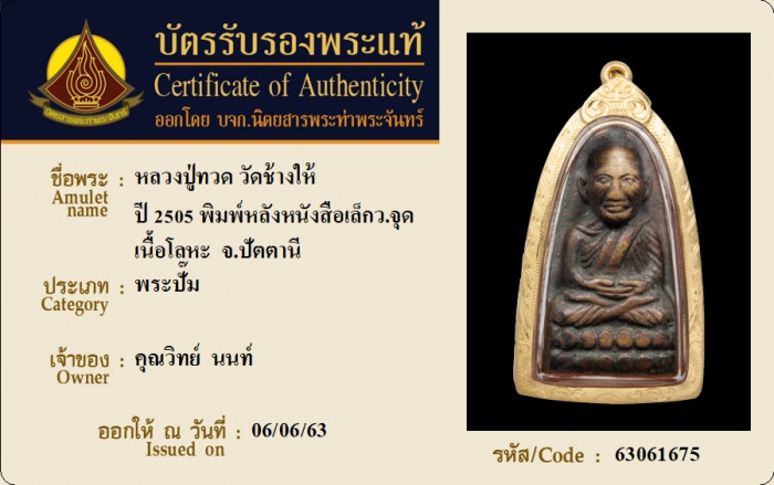 ค้นหาใบการันตีพระแท้