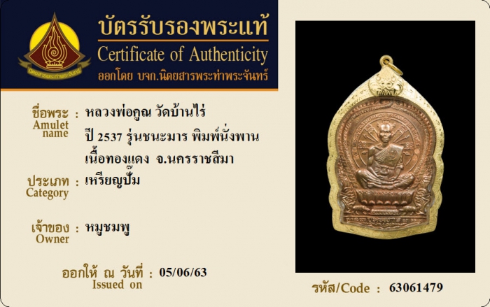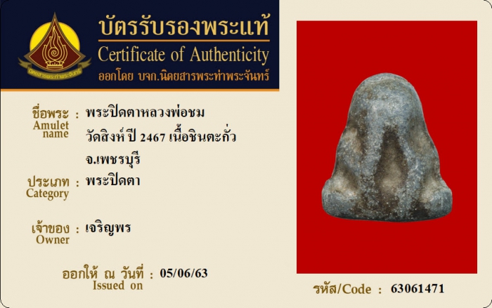 ค้นหาใบการันตีพระแท้