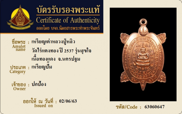 ค้นหาใบการันตีพระแท้