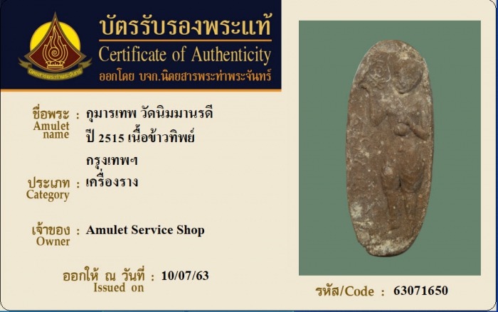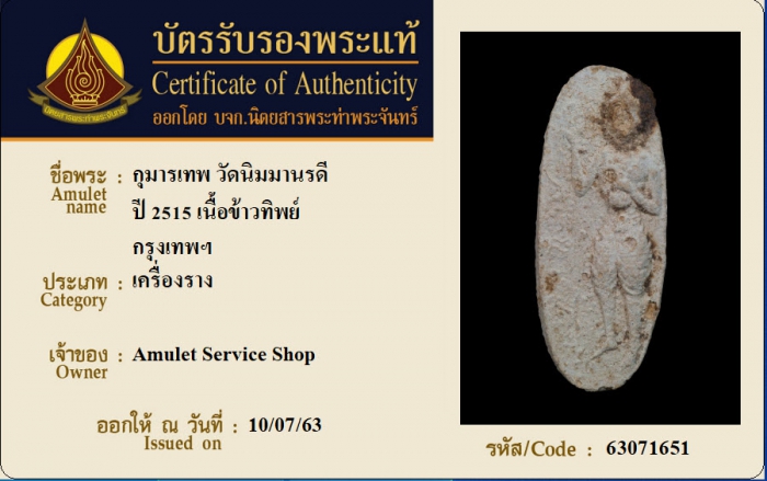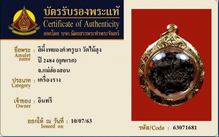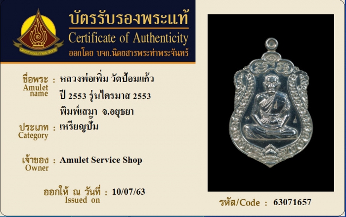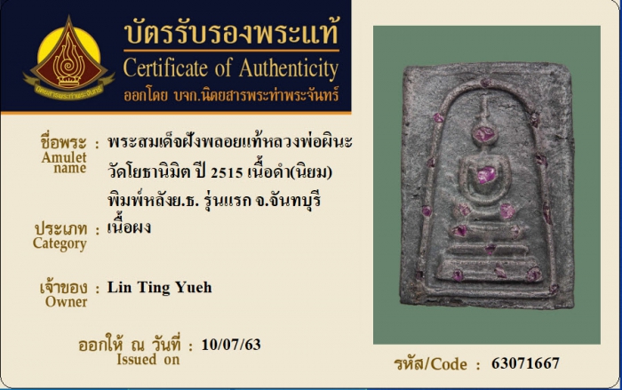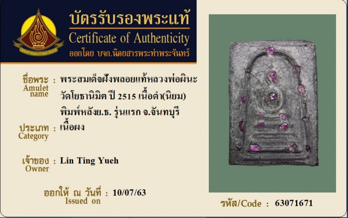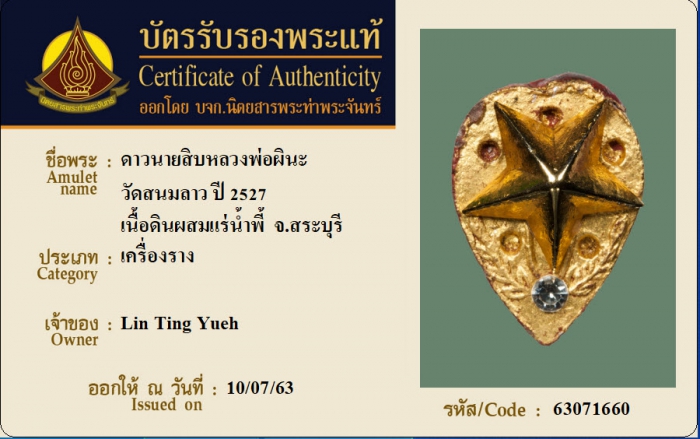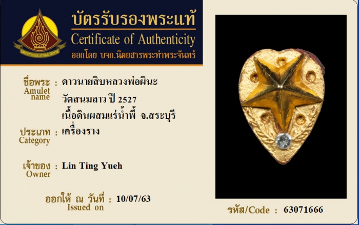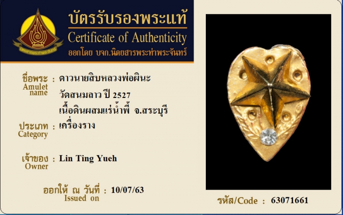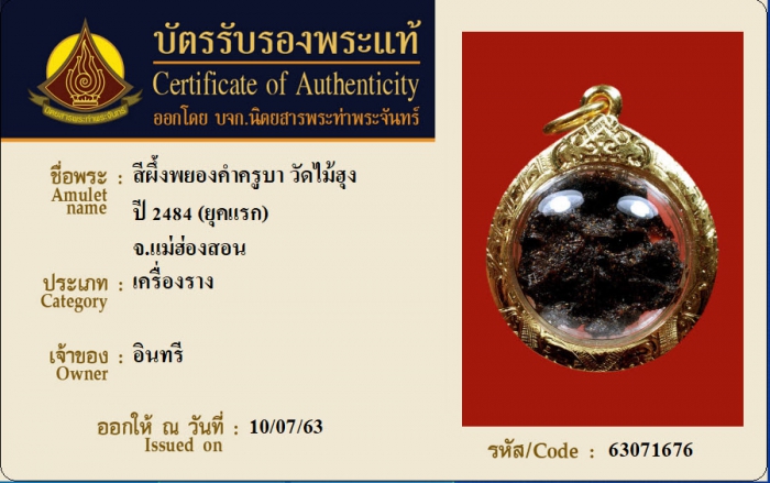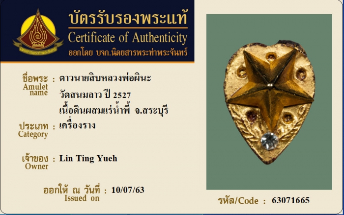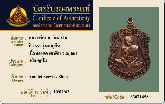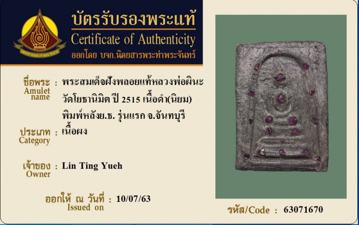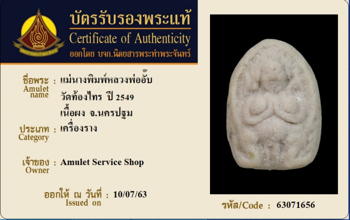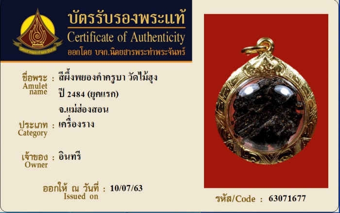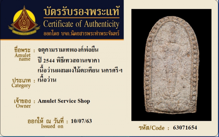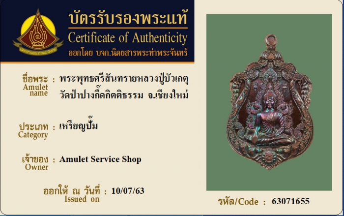 ค้นหาใบการันตีพระแท้