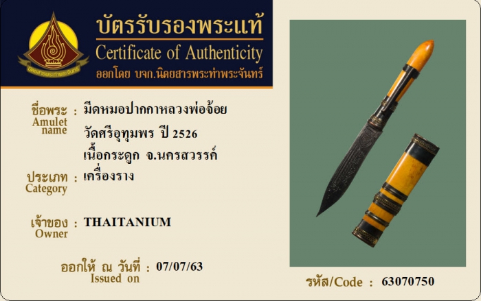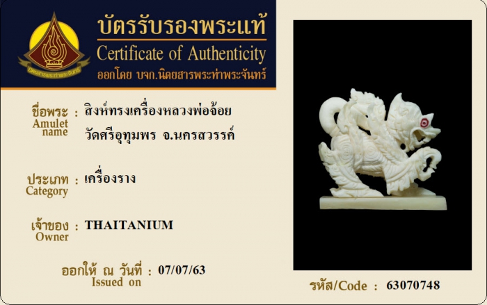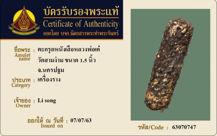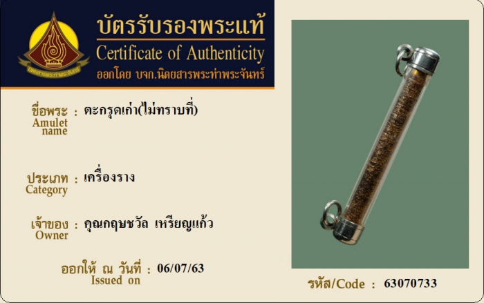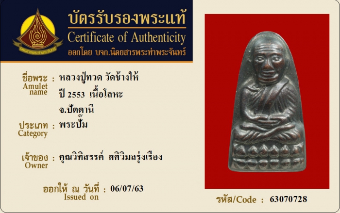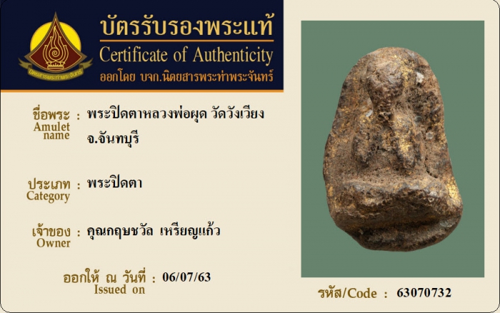 ค้นหาใบการันตีพระแท้