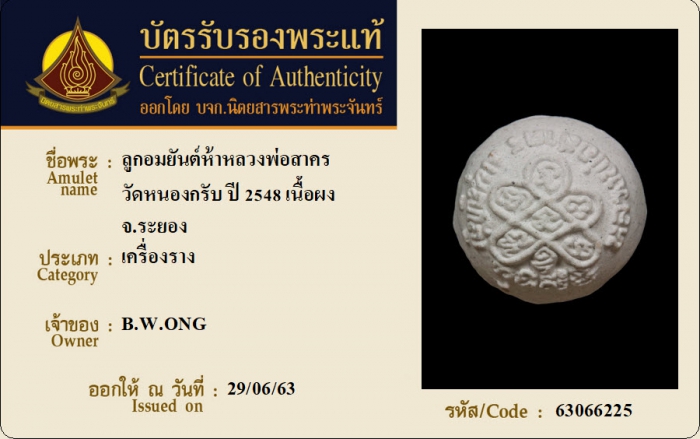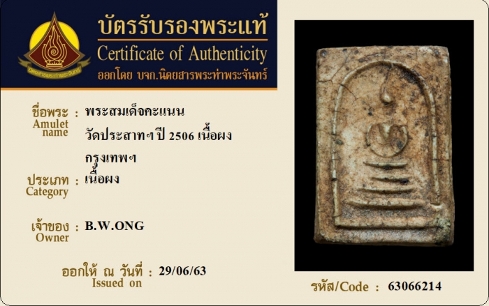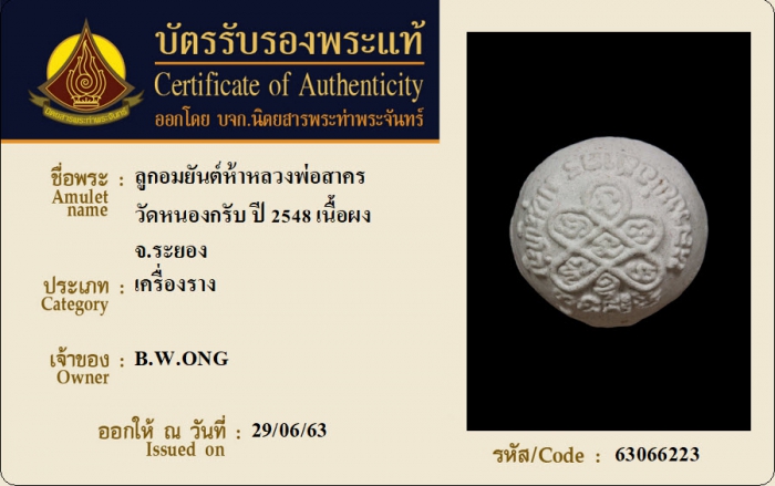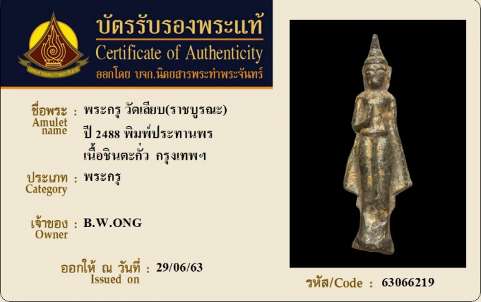 ค้นหาใบการันตีพระแท้