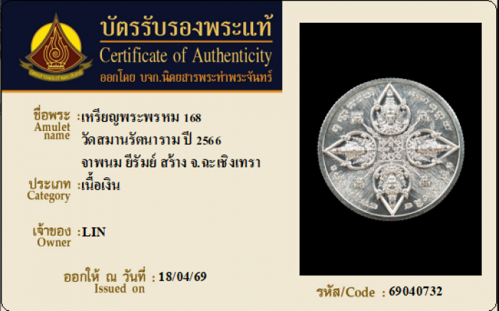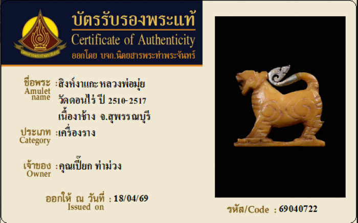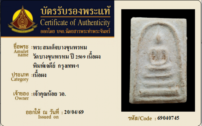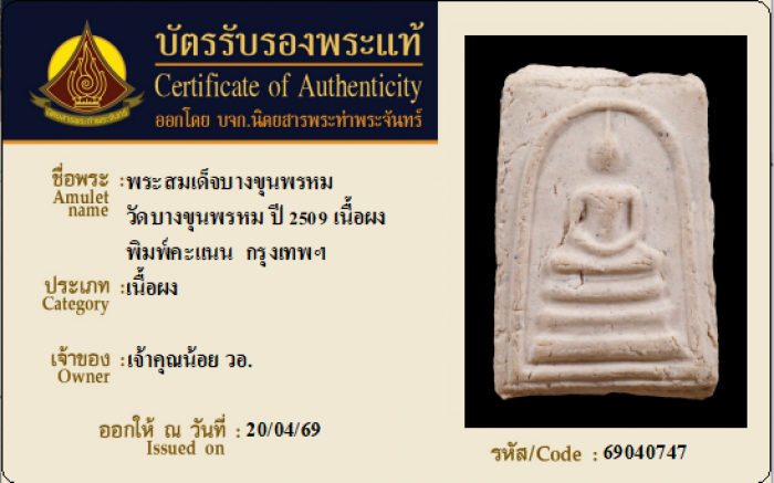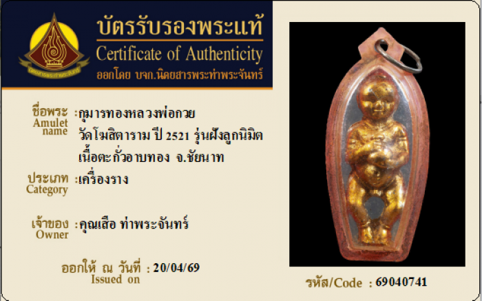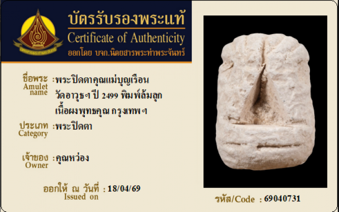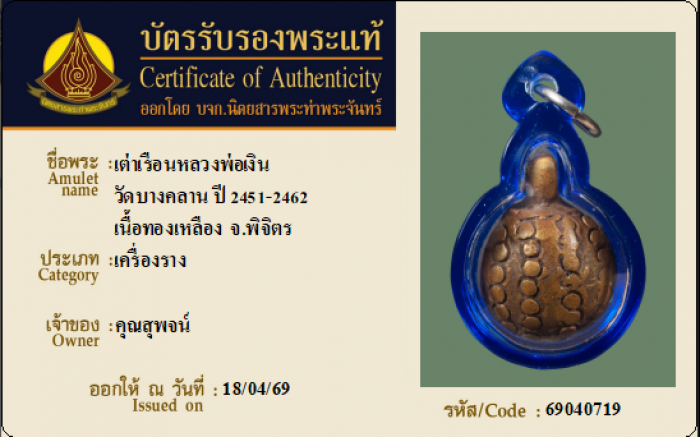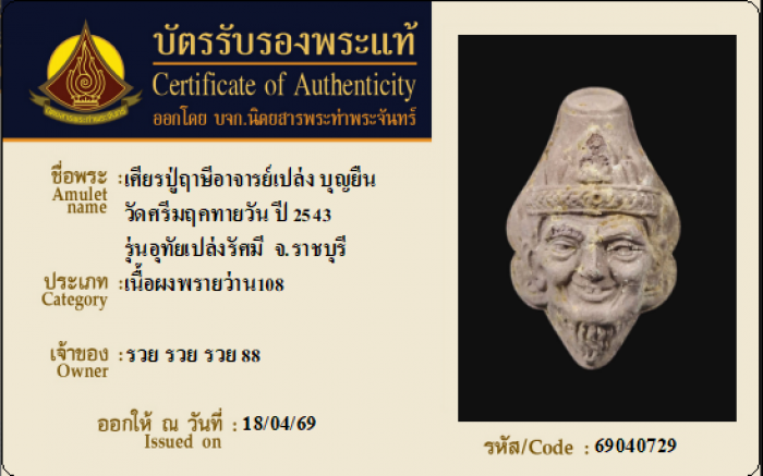 ค้นหาใบการันตีพระแท้