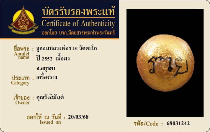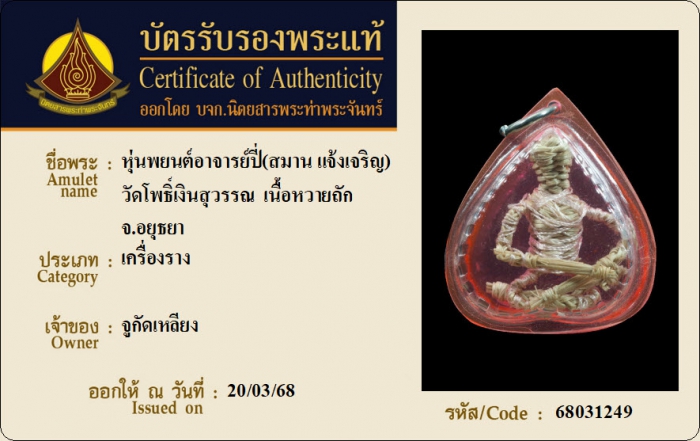 ค้นหาใบการันตีพระแท้