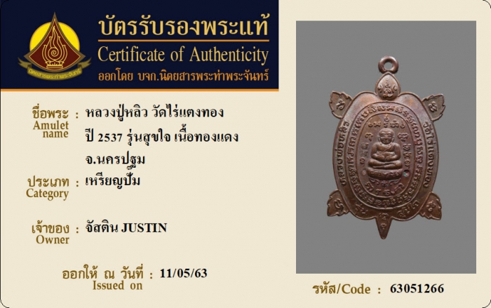 ค้นหาใบการันตีพระแท้