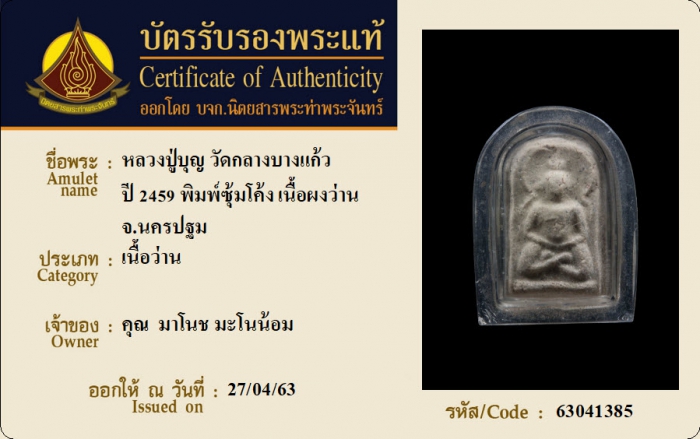ค้นหาใบการันตีพระแท้