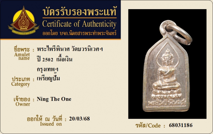 ค้นหาใบการันตีพระแท้