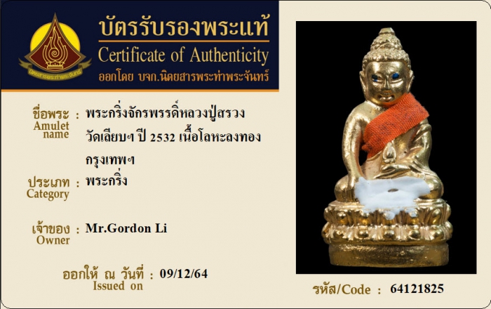 ค้นหาใบการันตีพระแท้