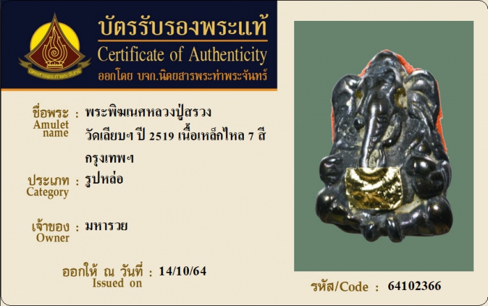 ค้นหาใบการันตีพระแท้