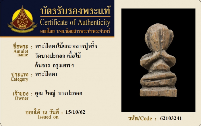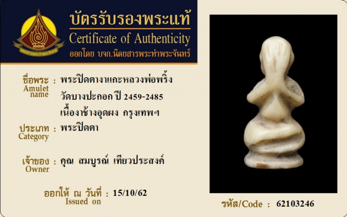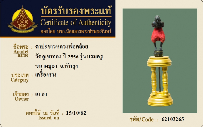 ค้นหาใบการันตีพระแท้
