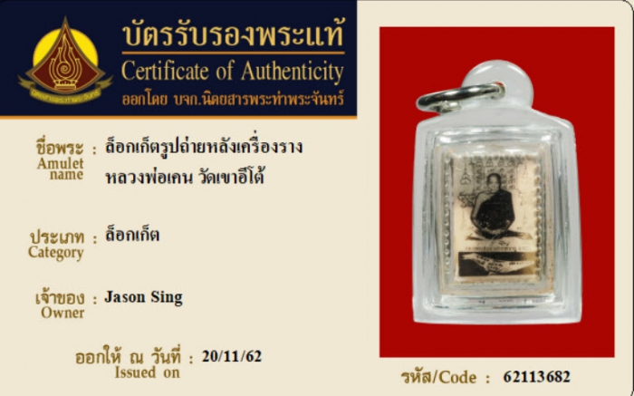ค้นหาใบการันตีพระแท้