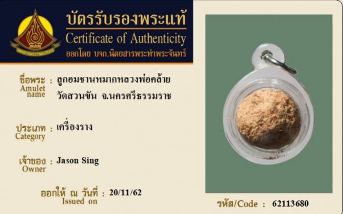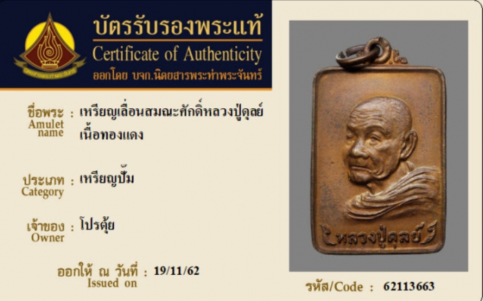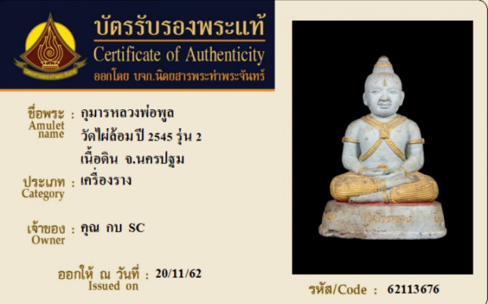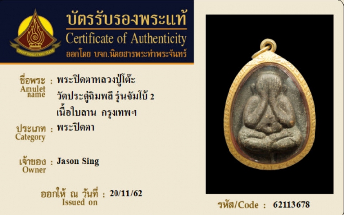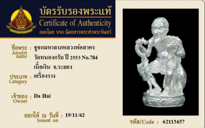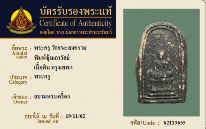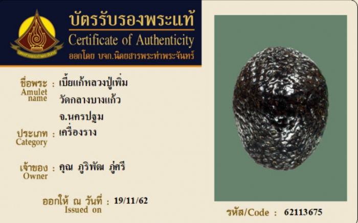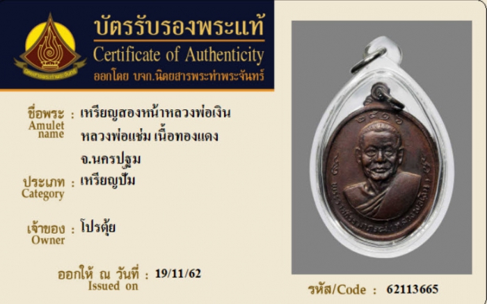 ค้นหาใบการันตีพระแท้