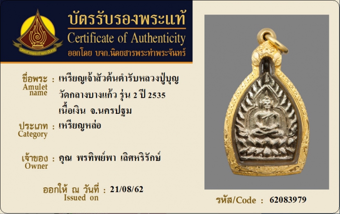 ค้นหาใบการันตีพระแท้