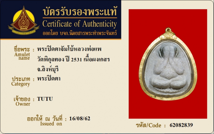 ค้นหาใบการันตีพระแท้
