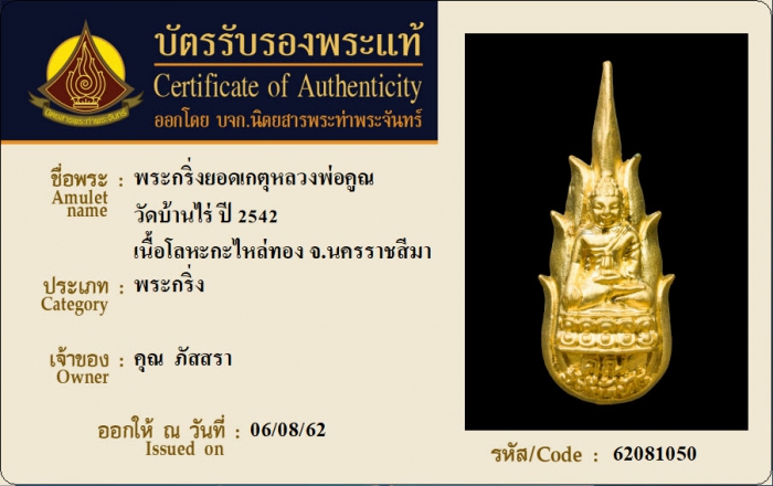 ค้นหาใบการันตีพระแท้