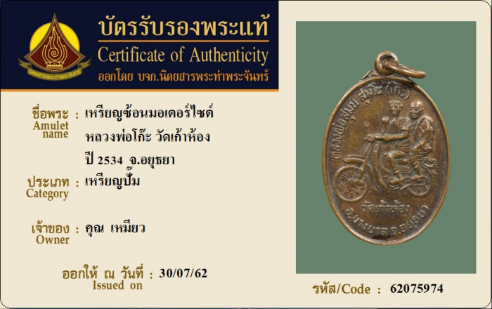 ค้นหาใบการันตีพระแท้