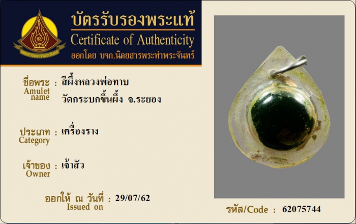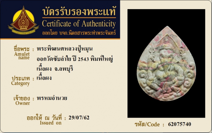 ค้นหาใบการันตีพระแท้