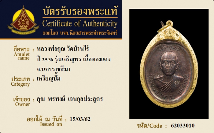 ค้นหาใบการันตีพระแท้