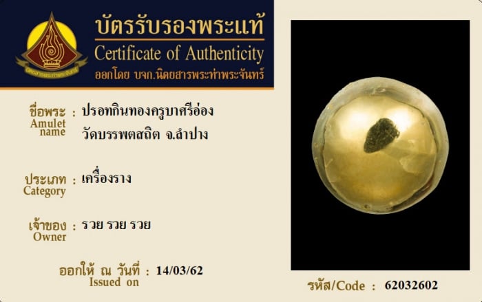ค้นหาใบการันตีพระแท้