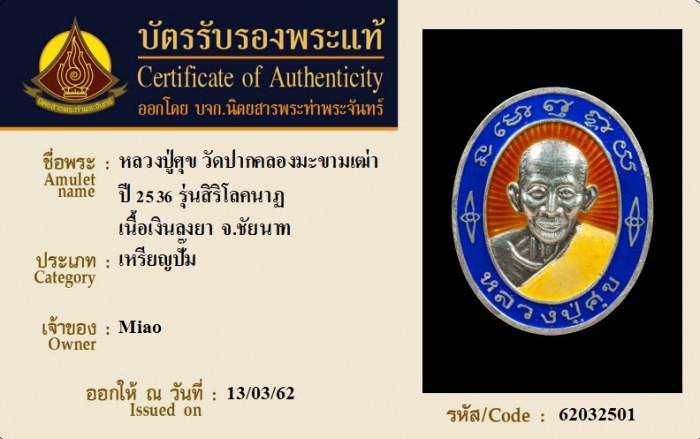 ค้นหาใบการันตีพระแท้