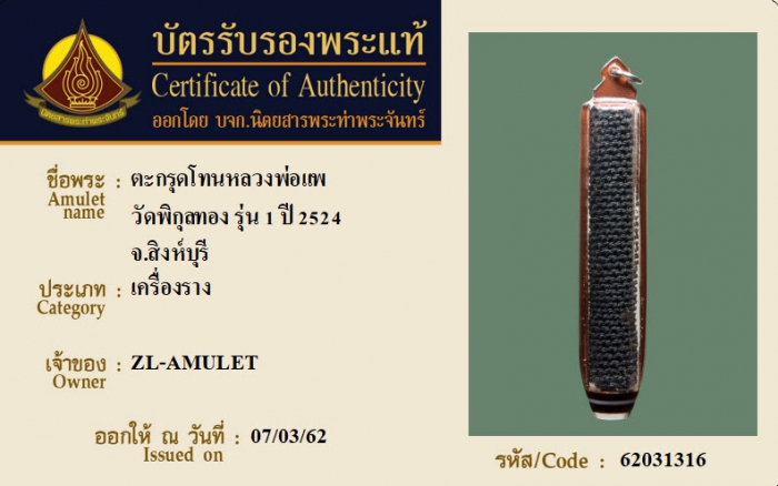 ค้นหาใบการันตีพระแท้