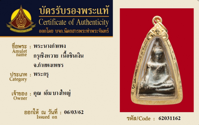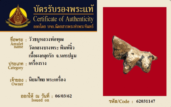 ค้นหาใบการันตีพระแท้
