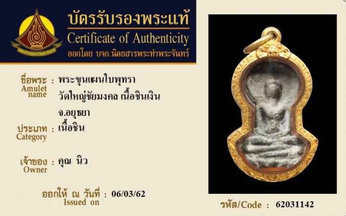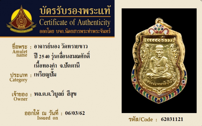 ค้นหาใบการันตีพระแท้