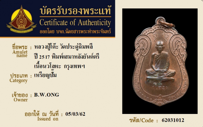 ค้นหาใบการันตีพระแท้