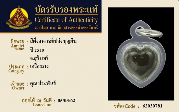 ค้นหาใบการันตีพระแท้