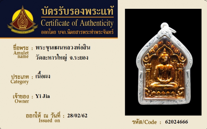 ค้นหาใบการันตีพระแท้