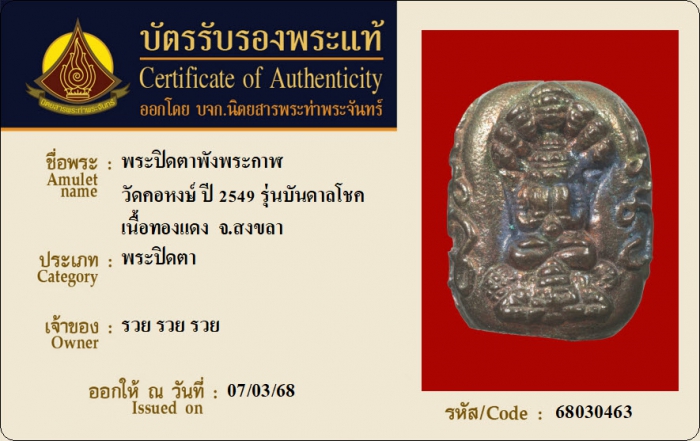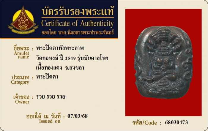 ค้นหาใบการันตีพระแท้