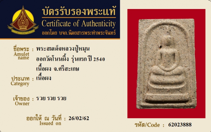 ค้นหาใบการันตีพระแท้