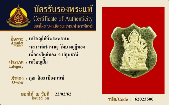 ค้นหาใบการันตีพระแท้