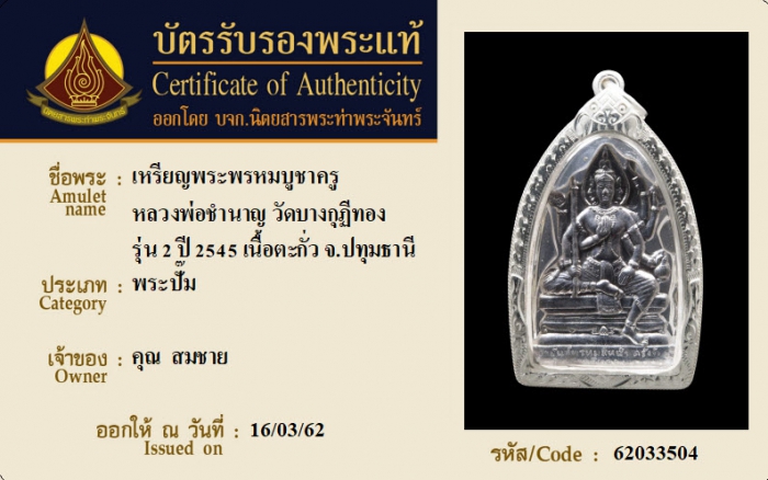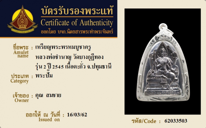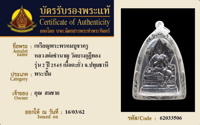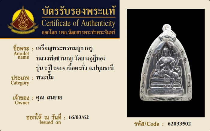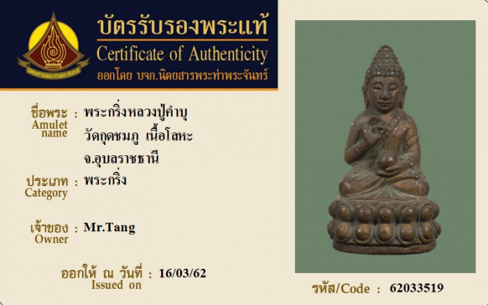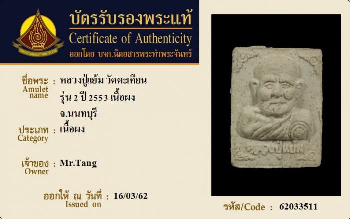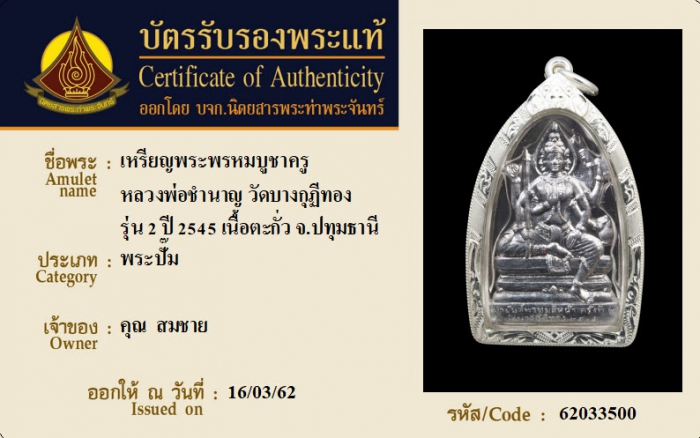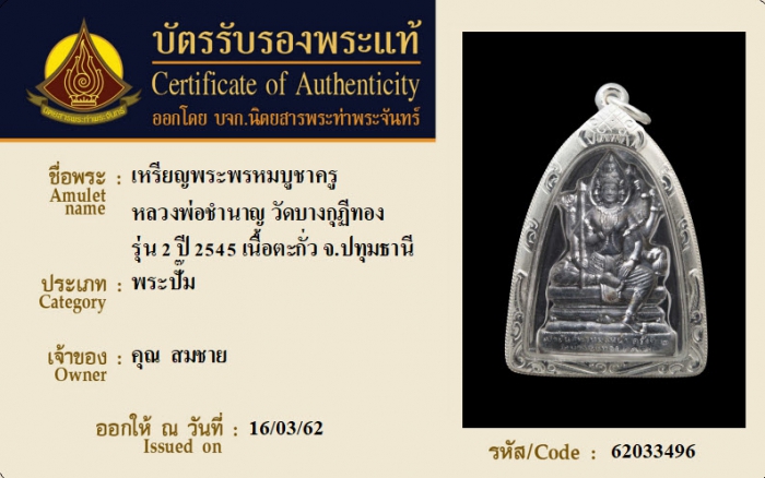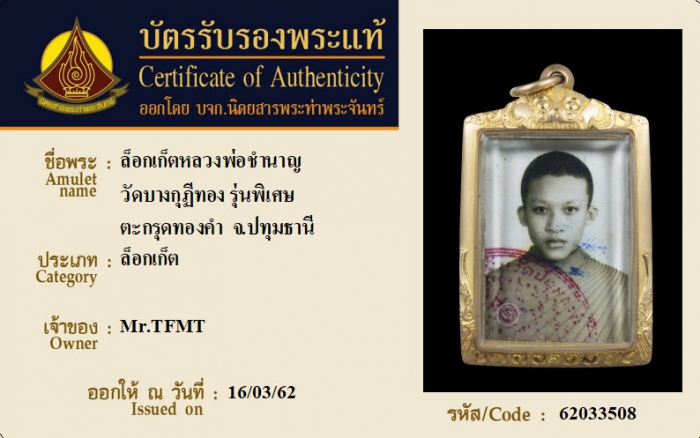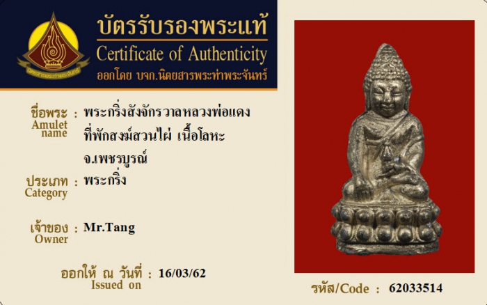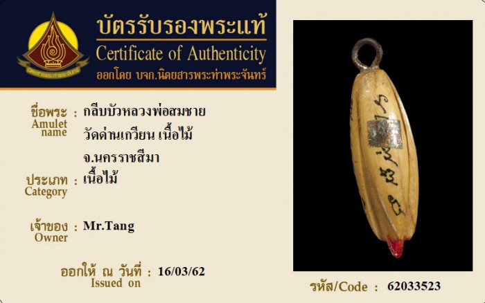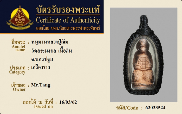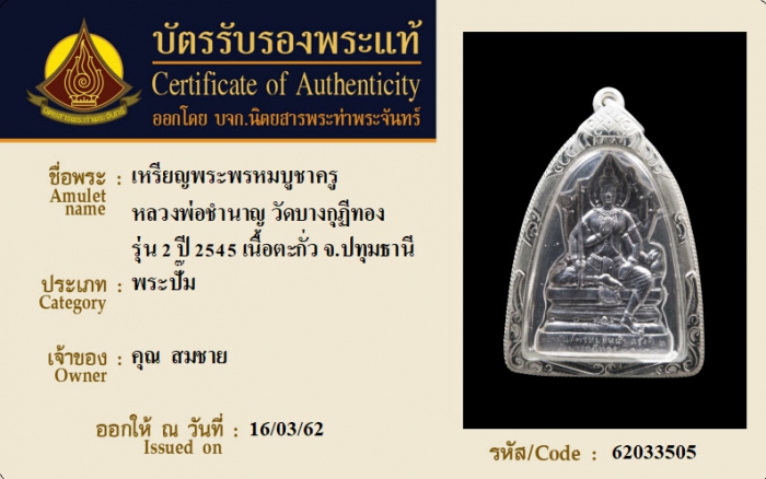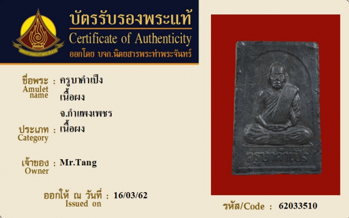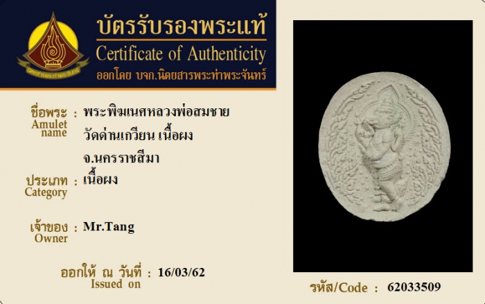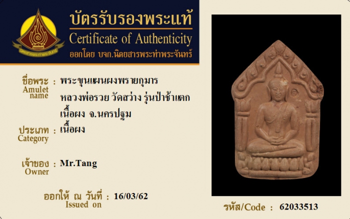 ค้นหาใบการันตีพระแท้