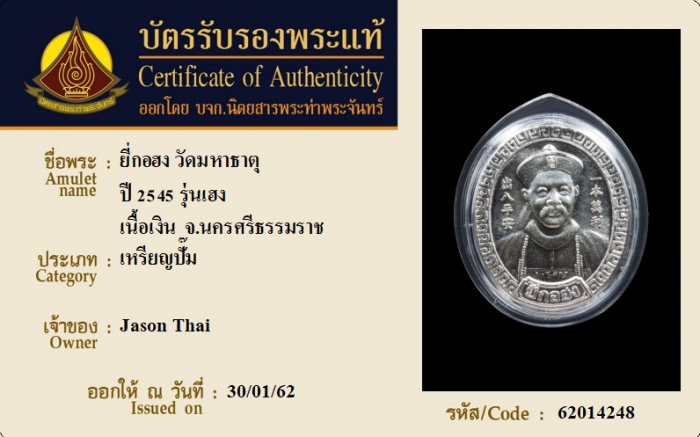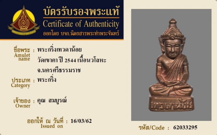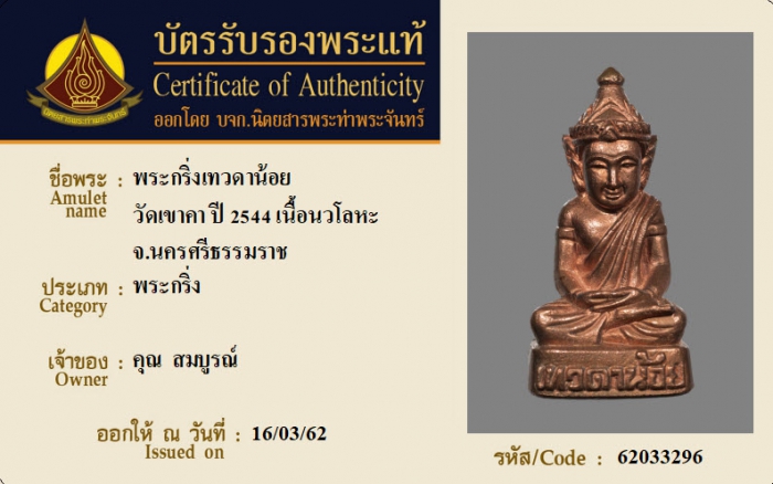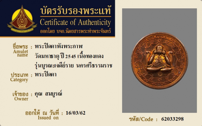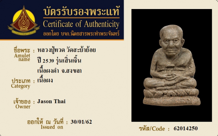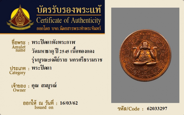 ค้นหาใบการันตีพระแท้