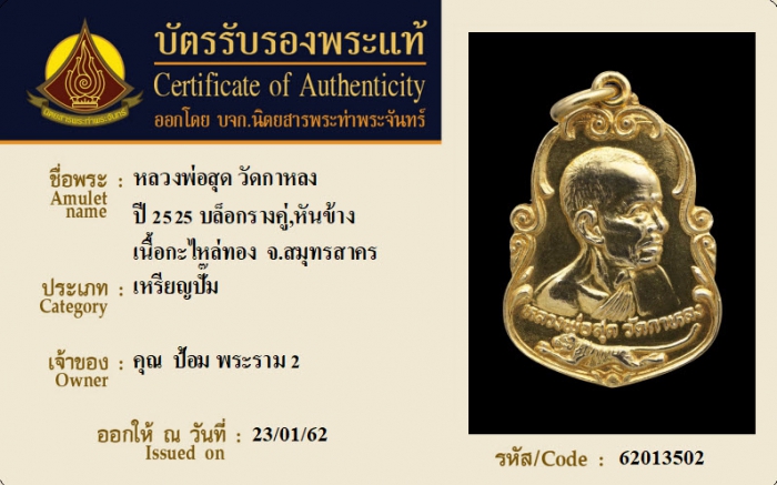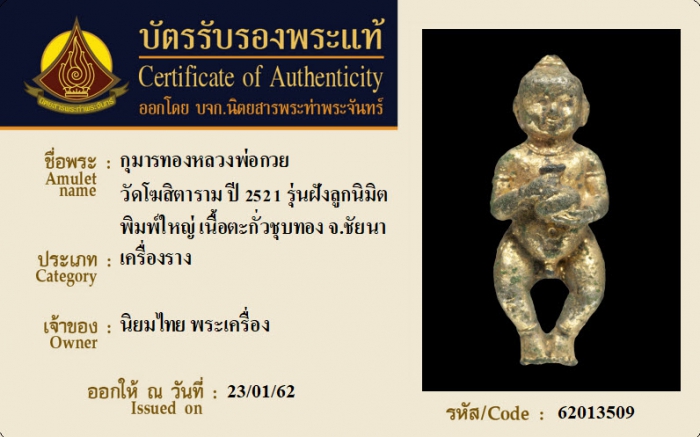 ค้นหาใบการันตีพระแท้