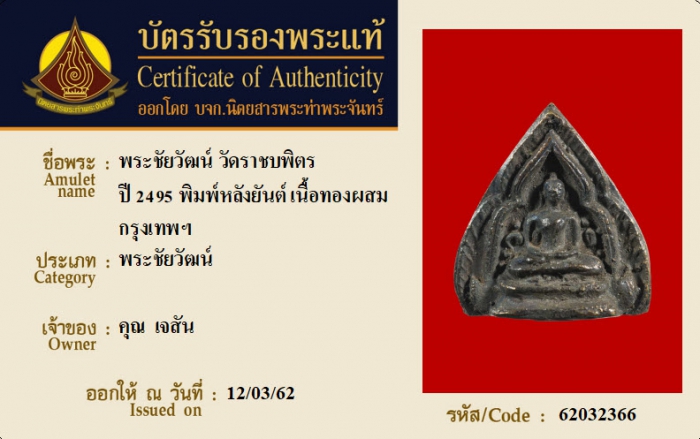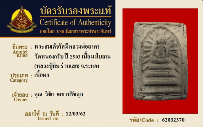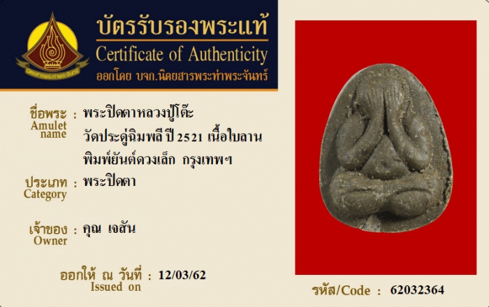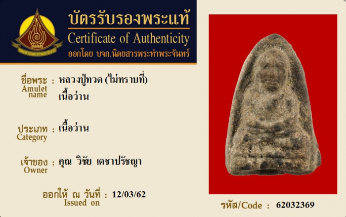 ค้นหาใบการันตีพระแท้