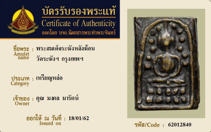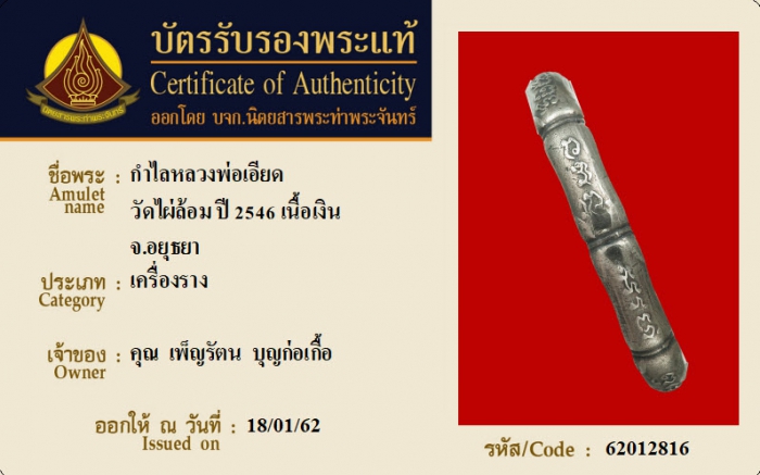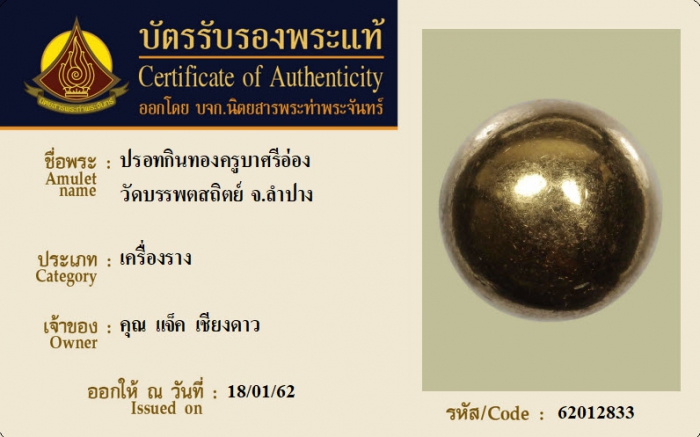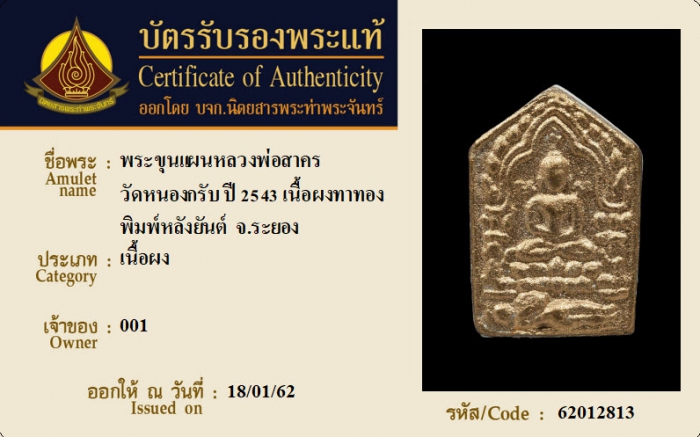 ค้นหาใบการันตีพระแท้
