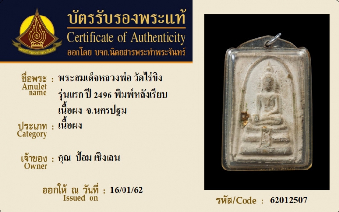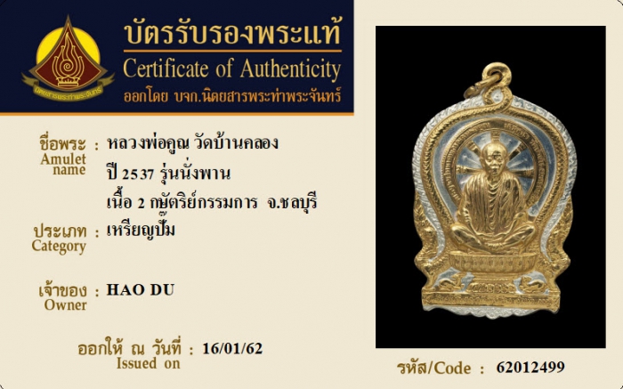 ค้นหาใบการันตีพระแท้