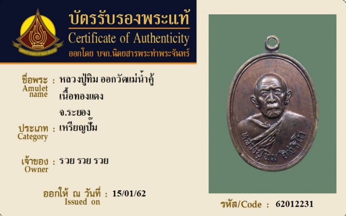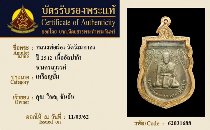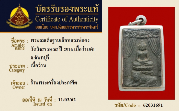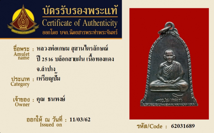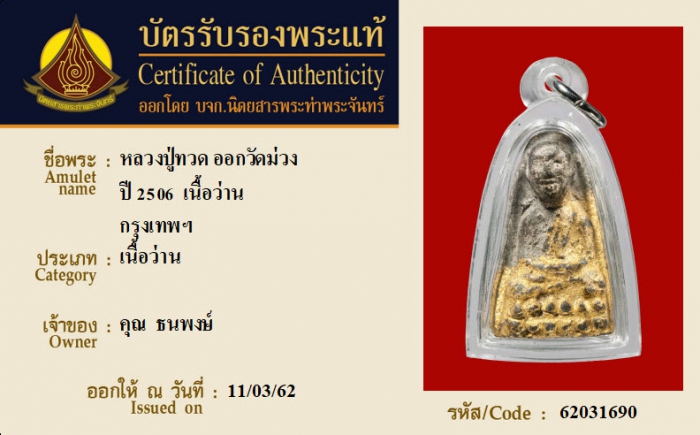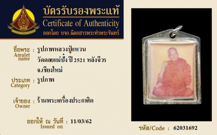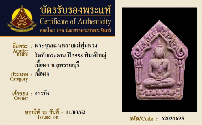 ค้นหาใบการันตีพระแท้