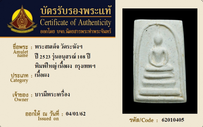 ค้นหาใบการันตีพระแท้