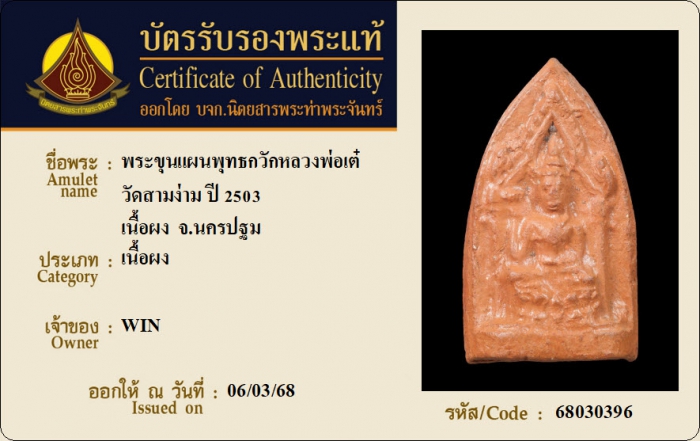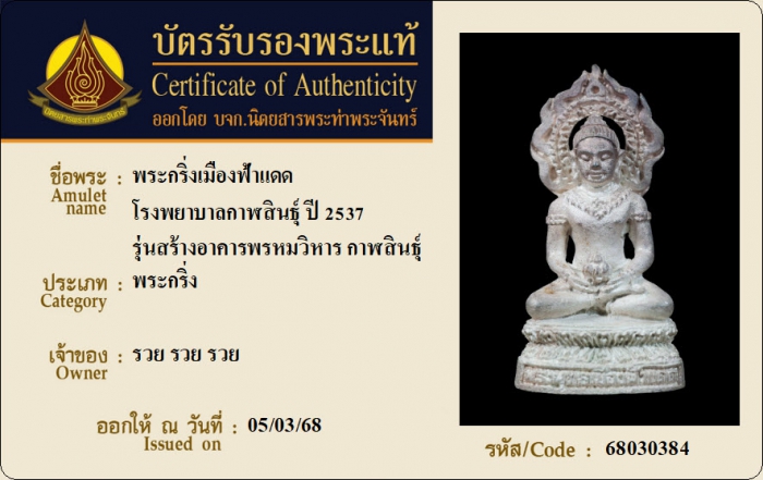 ค้นหาใบการันตีพระแท้
