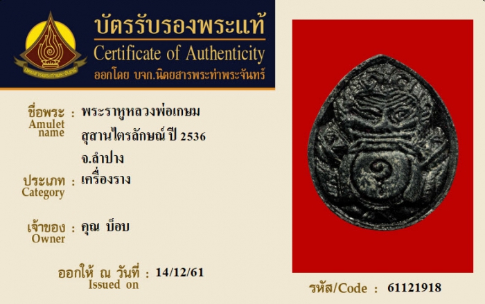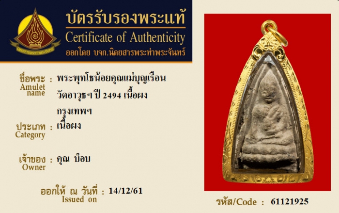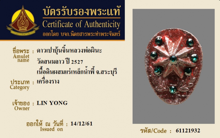 ค้นหาใบการันตีพระแท้