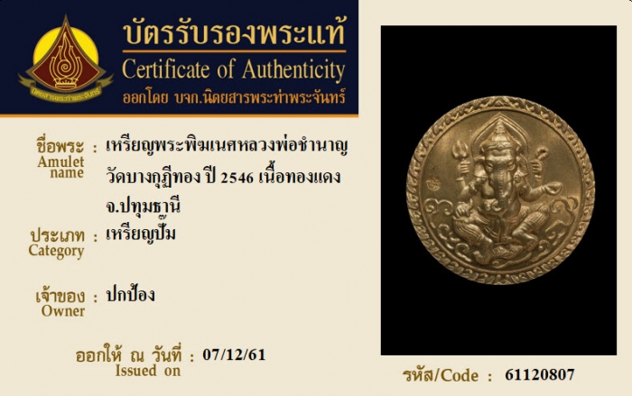 ค้นหาใบการันตีพระแท้