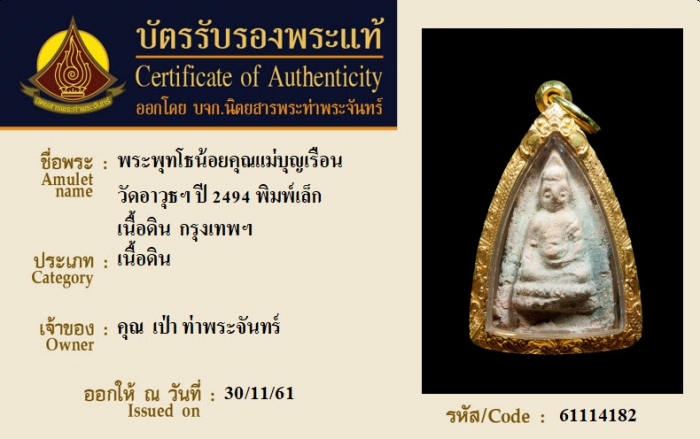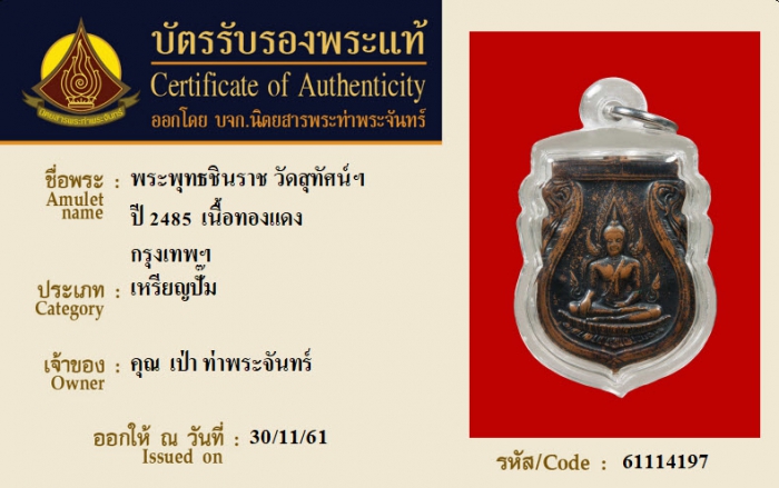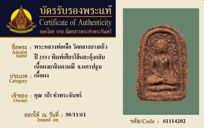 ค้นหาใบการันตีพระแท้