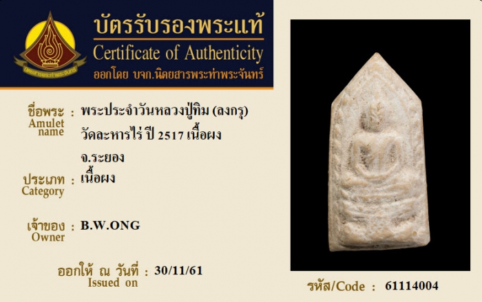 ค้นหาใบการันตีพระแท้