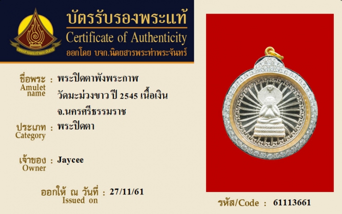 ค้นหาใบการันตีพระแท้