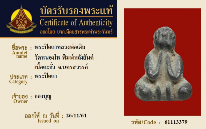 ค้นหาใบการันตีพระแท้