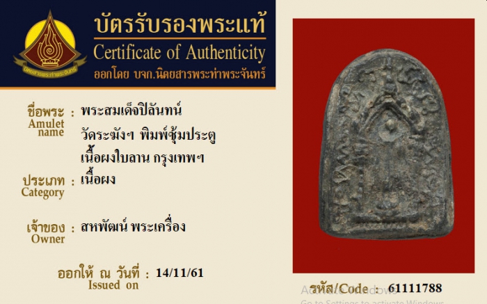 ค้นหาใบการันตีพระแท้